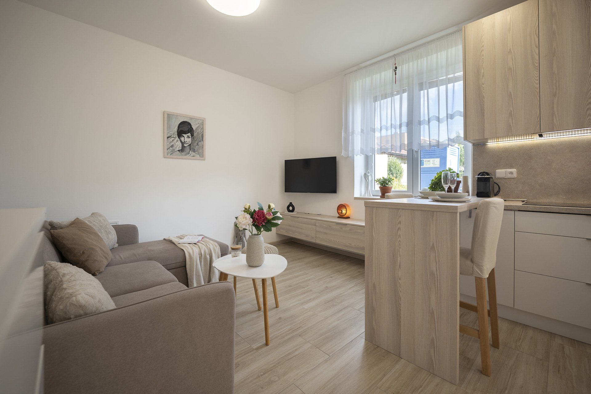 Tento byt v dispozici 2+kk je ideální volbou pro ty, kteří hledají nízkoúdržbové, moderní bydlení v menším městě s dostupnou vybaveností. Po rekonstrukci z roku 2023 je vše připraveno – nová kuchyňská linka, nová koupelna, podlahové vytápění, komora jako úložný prostor. Díky tomu, že se nachází ve zvýšeném přízemí, je přístupné bez nutnosti zdolávat schody, což oceníte zejména při stěhování nebo pro starší osoby.