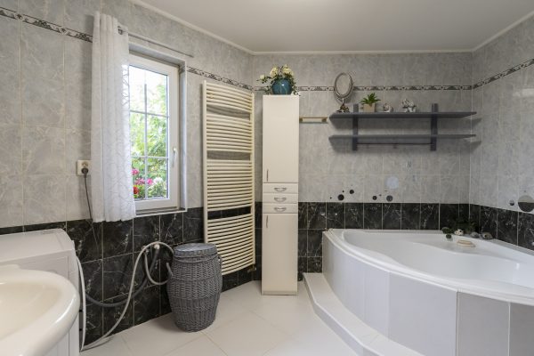 V domě se nachází ložnice a dvě koupelny. Kromě hlavní koupelny se záchodem je tu i jeden pokoj s vlastní koupelnou.